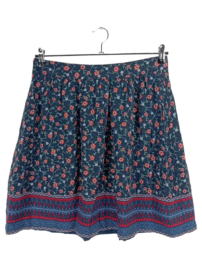 A-Linienrock Blumenmuster Bohemian Damen Blau Gr. 40 L