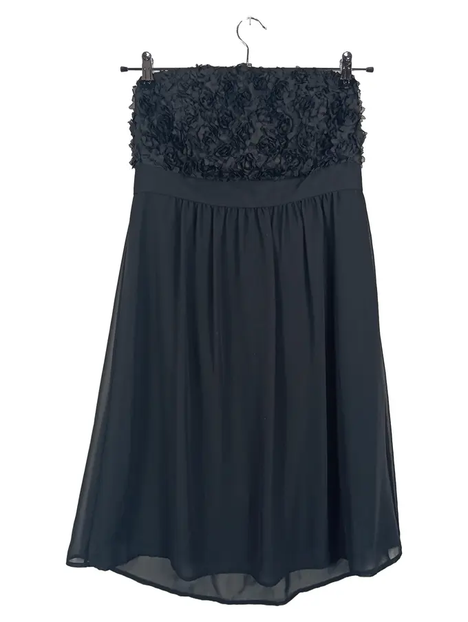 Abendkleid Blumenmuster elegant schwarz Gr. 40/L ärmellos Raffungen