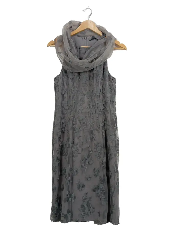 Abendkleid Damen Gr. 38 M Grau Floral Midikleid Festlich Spitze