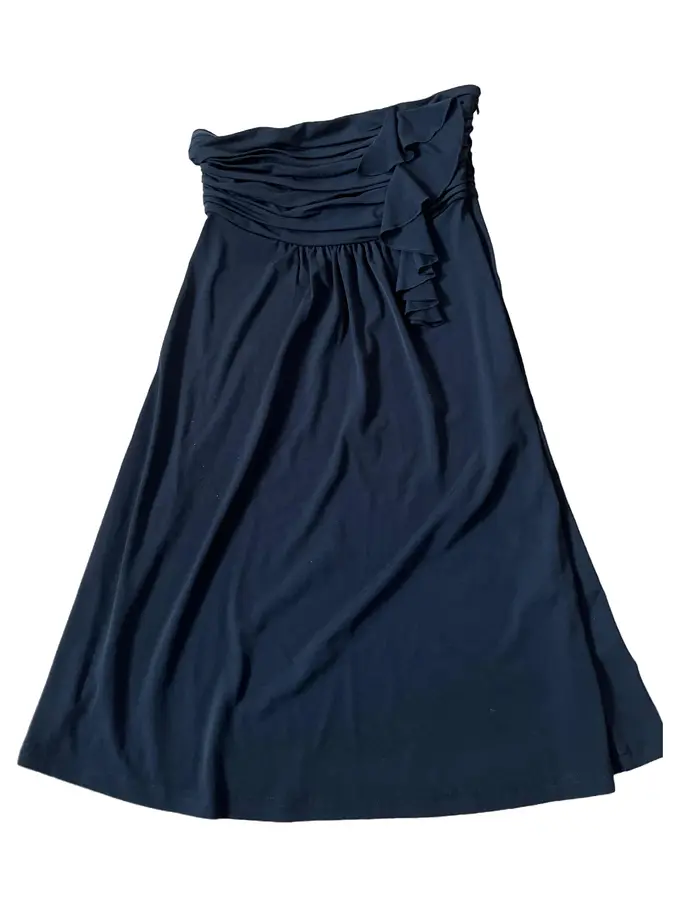 Abendkleid Damen XS Schwarz Elegant Trägerlos Rüschen Raffungen