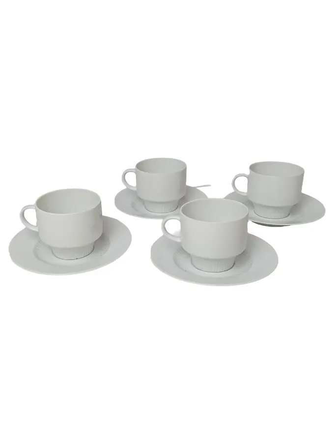 AK KAISER Tasse und Unterteller Set 4tlg Weiß Porzellan Klassisch