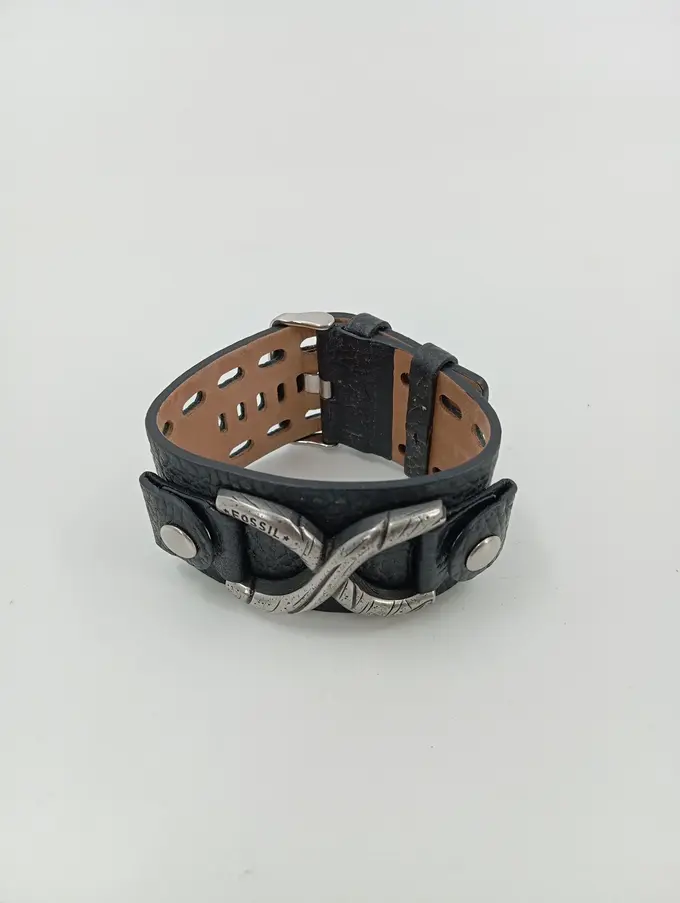 Armband Damen Leder Metall Schwarz Casual 4cm breit 25cm lang