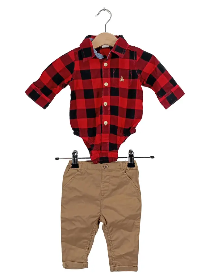 Baby Body Hemd kariert rot schwarz Gr. 62 3-6 Monate + Hose Set