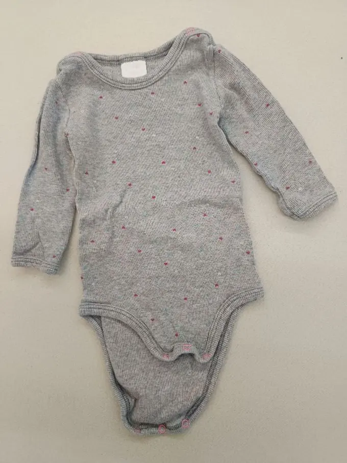 Baby Body Mädchen Langarm Grau Punkte Baumwolle Gr. 74