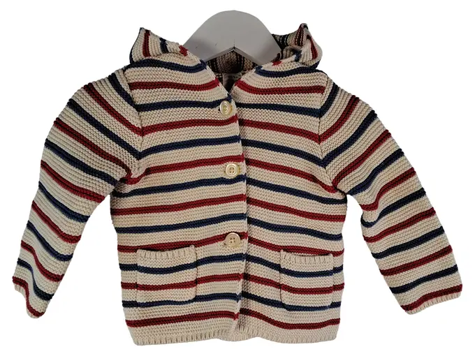 Baby Strickjacke Kapuze gestreift Gr. 70, 74 Baumwolle maritim