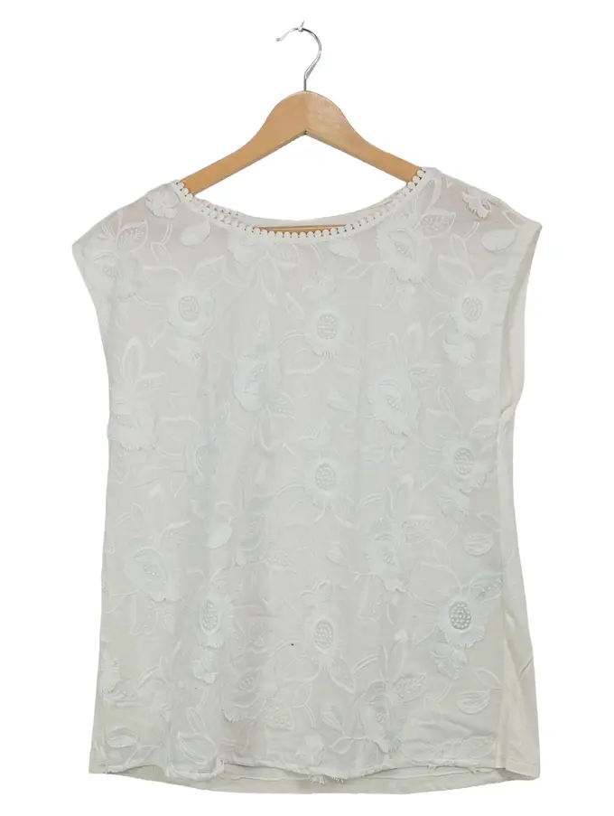 Black Label Bluse Damen Gr. 38 Weiß Blumenstickerei