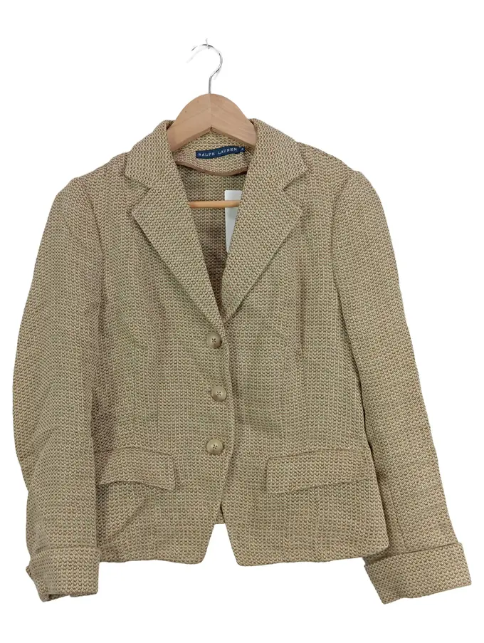 Blazer Damen Beige Klassisch Leinen Strukturmuster Gr. 36/S