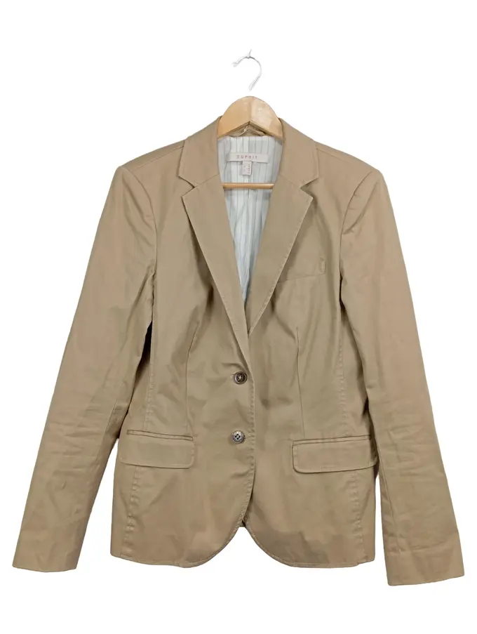 Blazer Damen Gr. 42 Beige Business Baumwolle Einreiher
