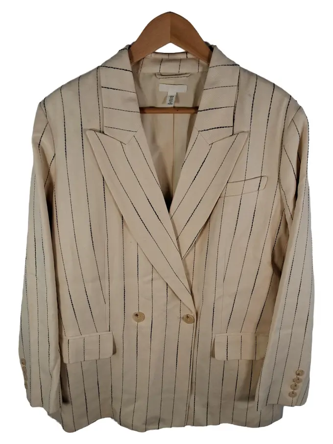 Blazer Damen Klassisch Gestreift Beige Baumwolle Business Gr. M