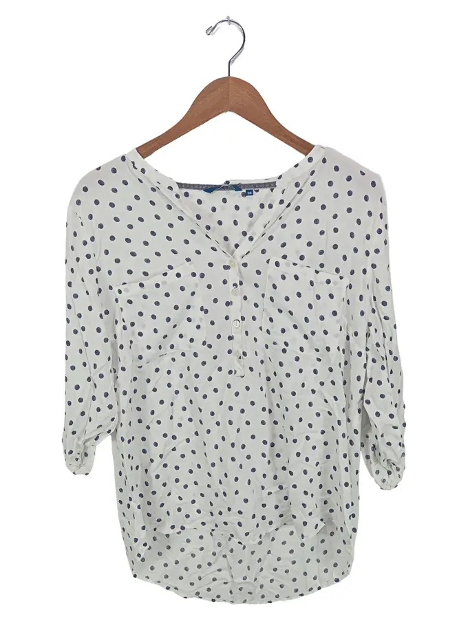 Bluse Damen 3/4-Arm Viskose Punkte Weiß Gr. 38 M