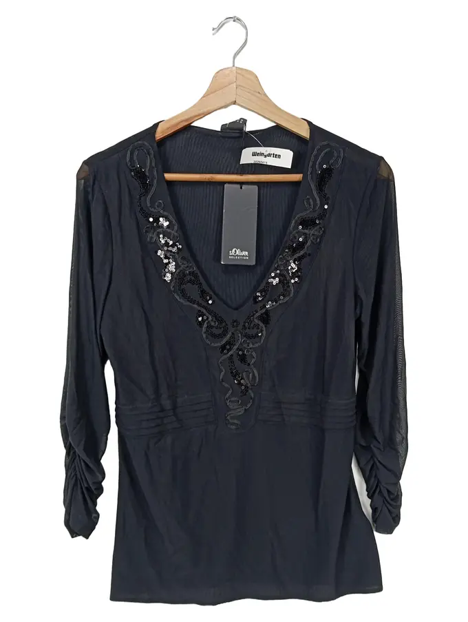 Bluse Damen 40 Schwarz Elegant Pailletten 3/4-Arm
