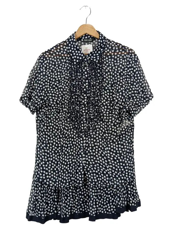 Bluse Damen 42/L Blau Punkte Klassisch Elegant Acetat