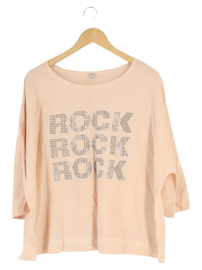 Bluse Damen 44/L Beige Casual Streetwear Strass Schriftzug