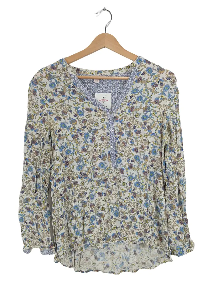 Bluse Damen Blumenmuster Boho Langarm Viskose Gr. 40 L Mehrfarbig