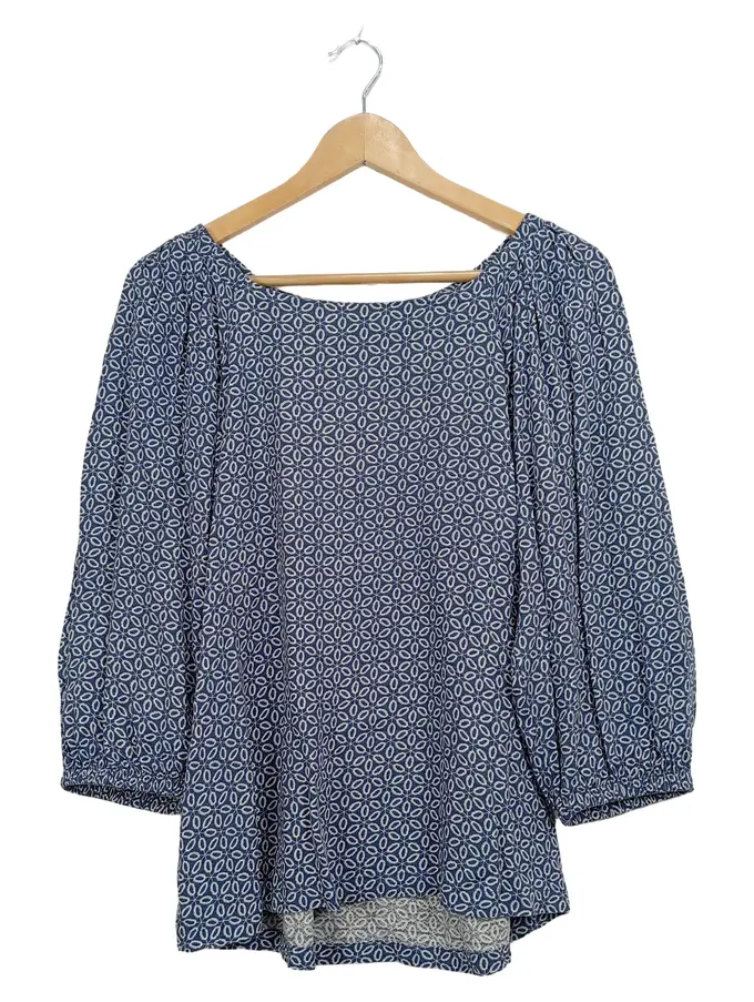 Bluse Damen Geometrisch 3/4-Arm Blau Gr. 38 Viskose Casual