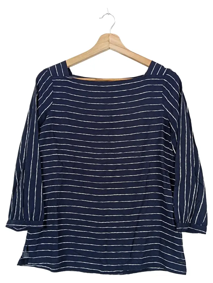 Bluse Damen Gr. 34/XS Blau Gestreift Casual Viskose 3/4-Arm