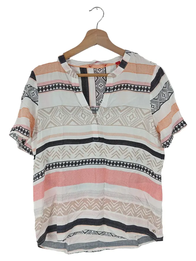 Bluse Damen Gr. 36/S Mehrfarbig Casual Ethno Streifen Kurzarm