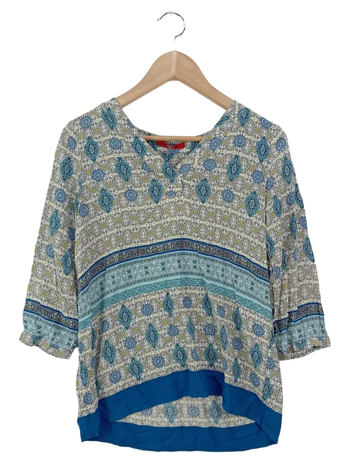 Bluse Damen Gr. 36/S Mehrfarbig Ethno Vintage 3/4-Arm Viskose
