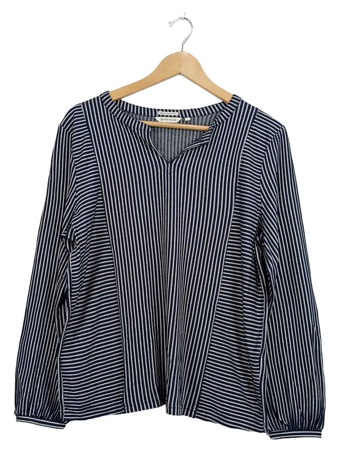 Bluse Damen Gr. L Langarm Gestreift Blau Weiß Baumwolle