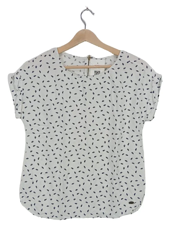 Bluse Damen Kurzarm Blumenmuster Viskose Weiß Gr. 34 XS
