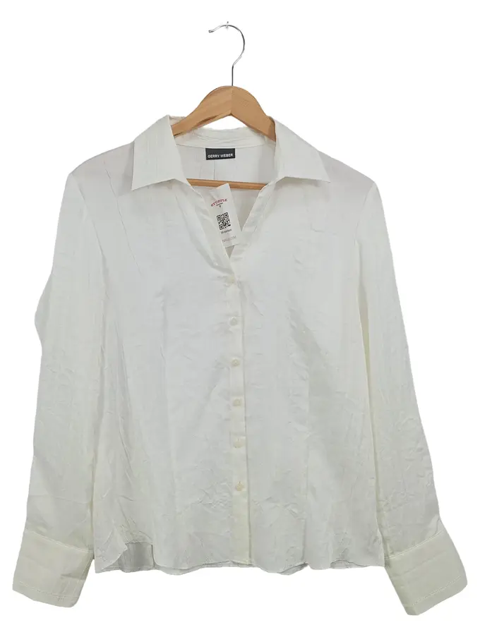 Bluse Damen Langarm Weiß Gr. 38/M Klassisch Business Strukturmuster