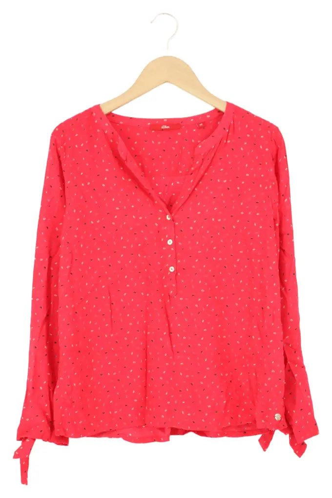 Bluse Damen Rot Gemustert Gr. 38/M Langarm Casual Business