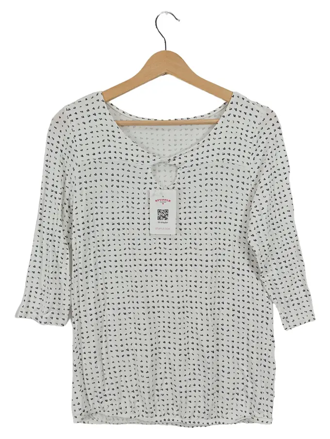Bluse Damen Shirt Gr. 36x38 Weiß Muster Viskose 3/4 Arm Casual