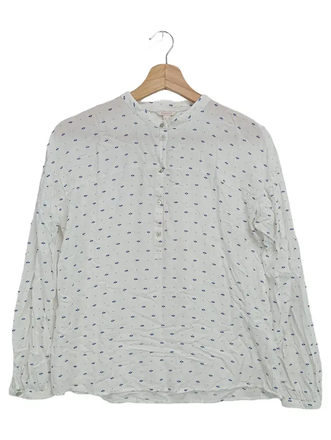 Bluse Damen Weiß Florales Muster Langarm Klassisch Elegant Gr. 32 XXS
