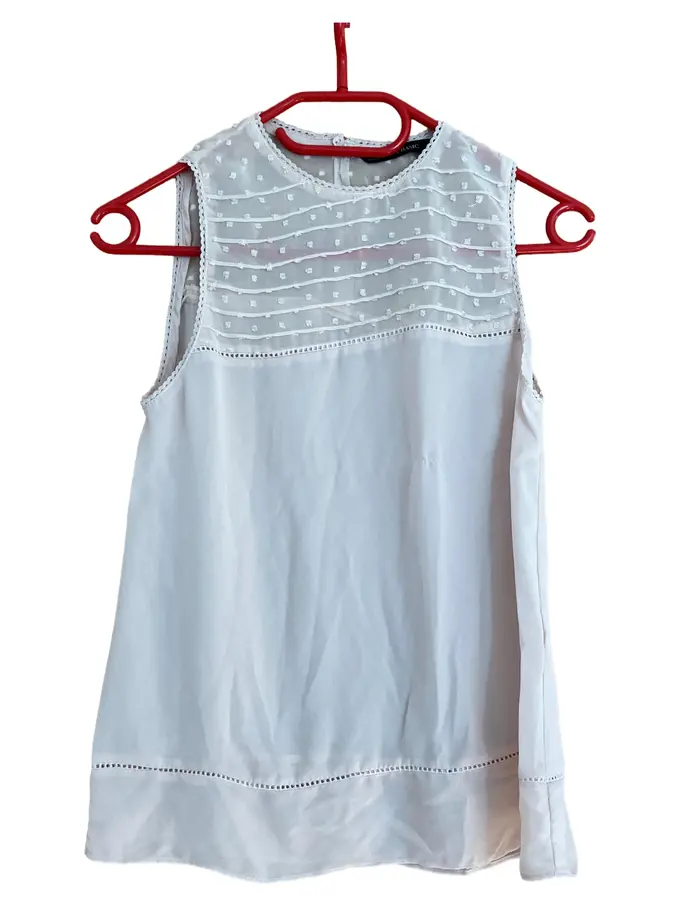 Bluse Damen Weiß Gr. 34/XS Ärmellos Punkte Basic