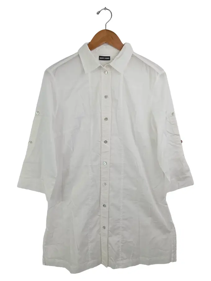 Bluse Damen Weiß Gr. 40/M Klassische Baumwollbluse 3/4 Arm