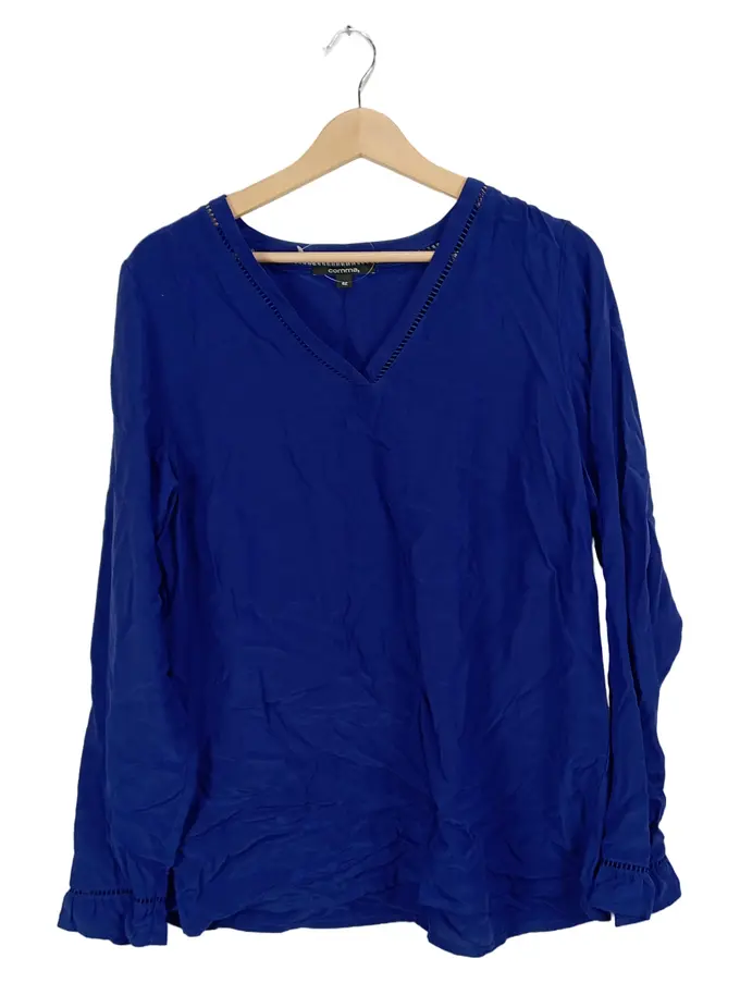 Bluse Langarm Blau Gr. 42 Viskose Lochmuster Casual Damen