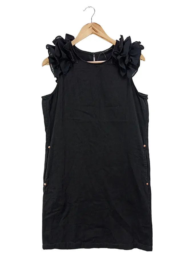 Blusenkleid Damen Gr. 34;XS Schwarz Rüschen Vintage Elegant Baumwolle