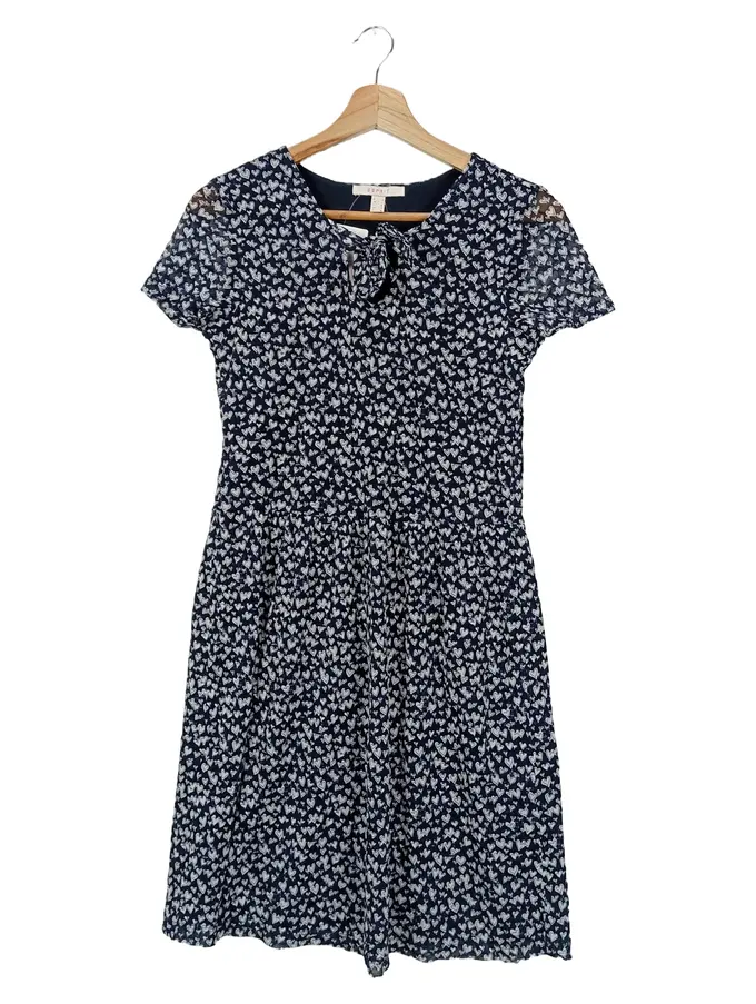 Blusenkleid Damen Gr. 36 S Blau Grafisch Vintage Elegant Sommer