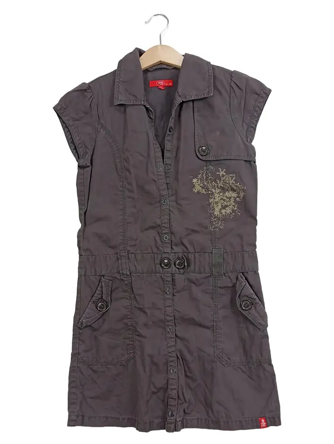 Blusenkleid Damen Gr. 36/S Grau Baumwolle Casual