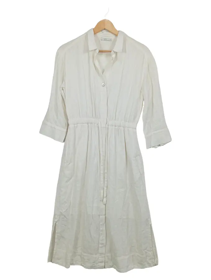 Blusenkleid Damen Gr. 36 Weiß Baumwolle Hemdblusenkleid