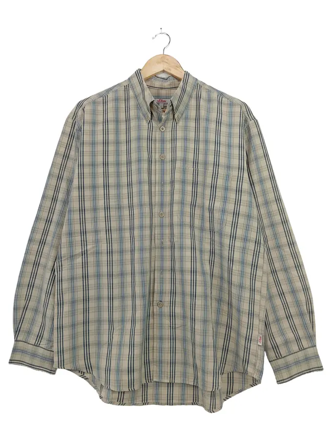 Business Hemd Herren 50/L Kariert Beige Blau Langarm