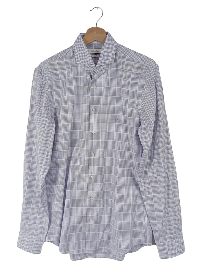 Business Hemd Herren Blau Kariert Baumwolle Gr. 38/M Langarm