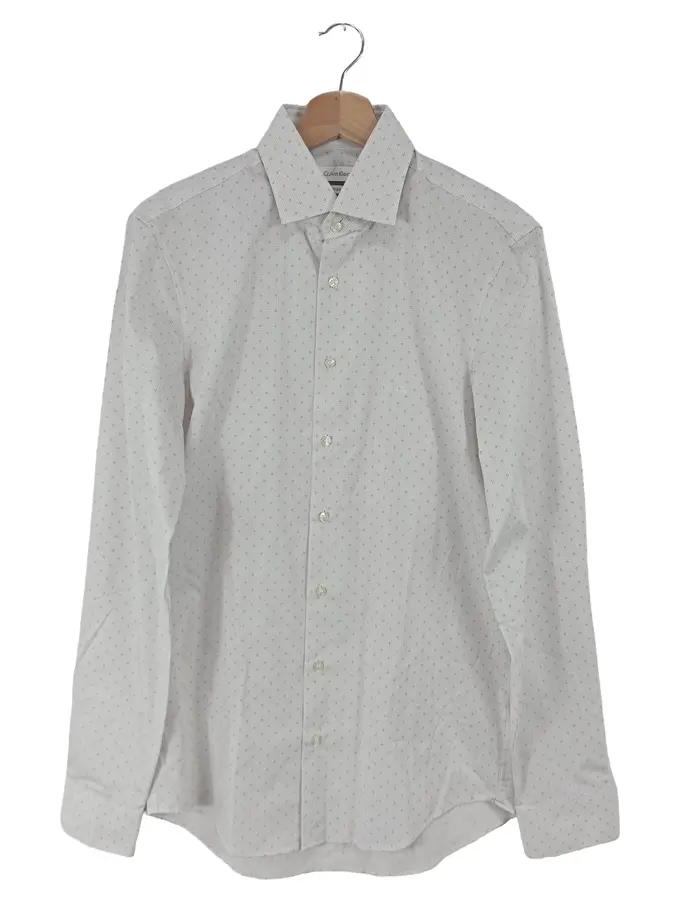Business Hemd Herren Gr. 37/S Weiß gepunktet Langarm
