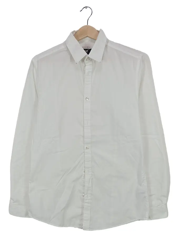 Business Hemd Herren Klassisch Weiß Langarm Gr. S Polyester Baumwolle