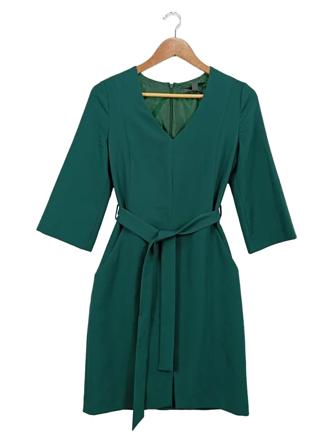 Businesskleid Damen Gr. 34/XS Grün Elegant mit Gürtel