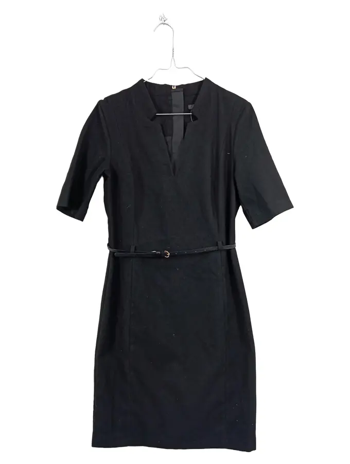 Businesskleid Damen Gr. 34/XS Schwarz Etuikleid mit Gürtel