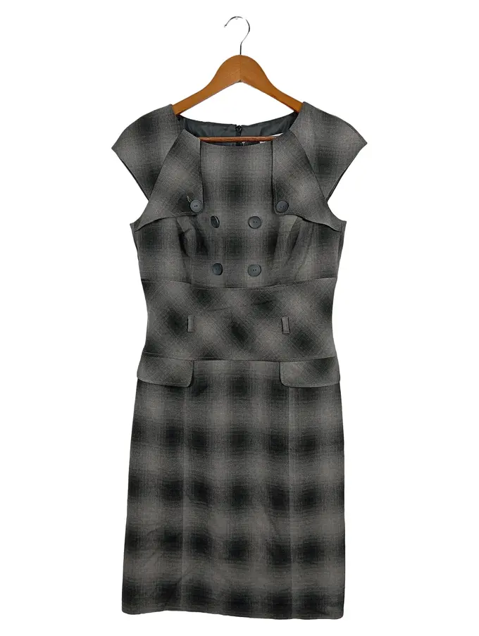 Businesskleid Damen Gr. 38/M Grau Kariert Elegant