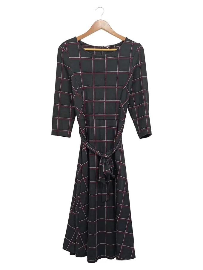 Businesskleid kariert grau 3/4-Arm Schleife Gr. 44 XXL