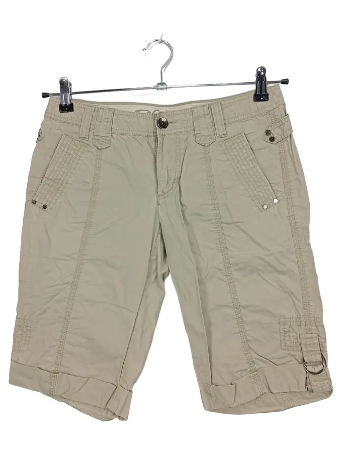 Cargo Bermuda Shorts Damen Beige Baumwolle Gr. W26 34 XS L21