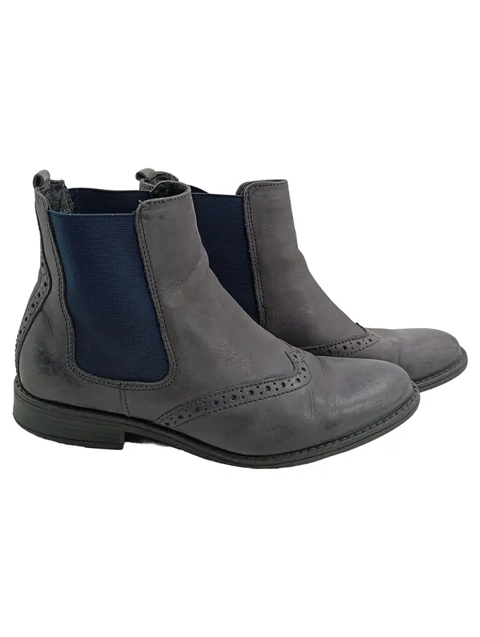 Chelsea Boots Brogue Stiefelette Damen Gr. 40 Grau Leder