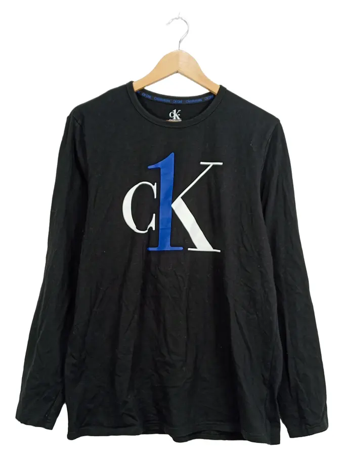 CK One Herren Langarmshirt Logo Schwarz Gr. L