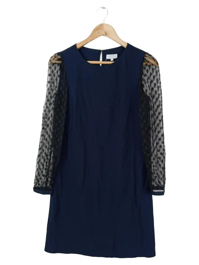 CLAUDE PIERLOT Blusenkleid Damen Gr. 36/S Blau Elegant Klassisch Punkte Ärmel
