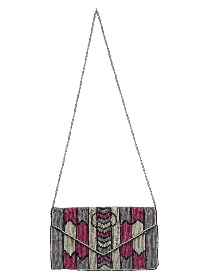 Clutch Damen Elegant Mehrfarbig Perlen Geometrisch 27x15cm