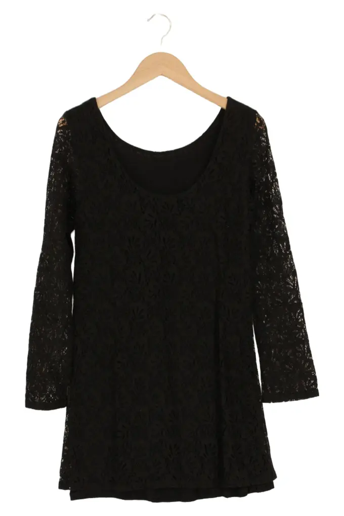 Cocktailkleid Damen 38/M Schwarz Elegant Spitze Blumenmuster Minikleid