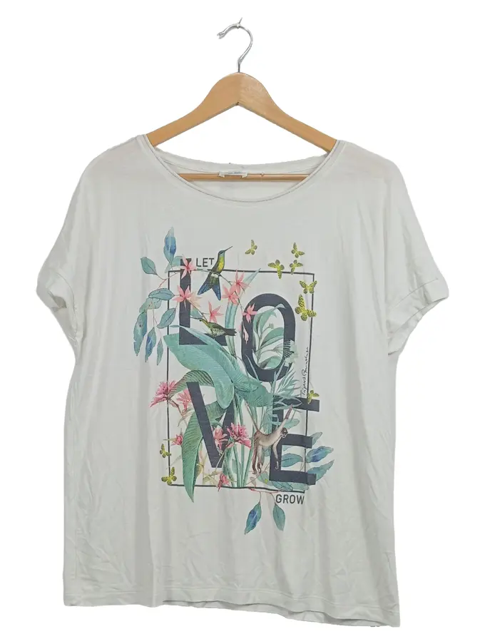 Collection Damen T-Shirt Gr. 40 Weiß Tropical Print LOVE